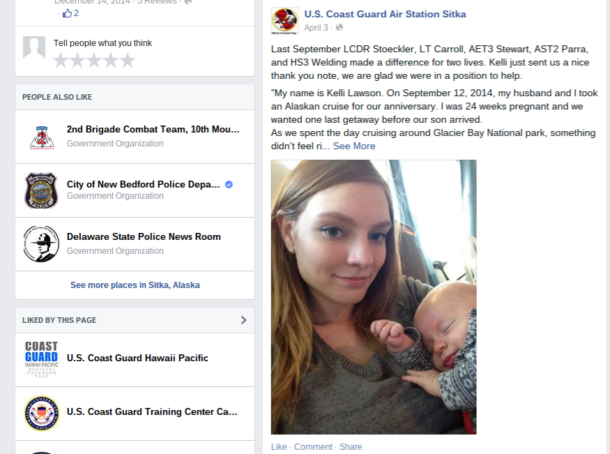 I was, however, able to get a hold of the Sitka Coast Guard and thank them for their service. They told me they don’t hear from the people the rescue very often and were very pleased to hear from me. Our story is even featured on their Facebook!